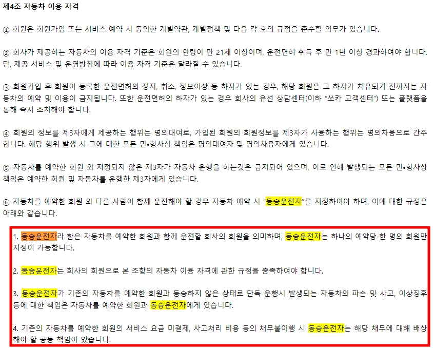 동승운전자는 예약자 본인 외 1명만 추가로 지정할 수 있고 쏘카 회원만 할 수 있어요. 그리고 차량 이용시 조건에 결격 사유가 없어야 합니다.