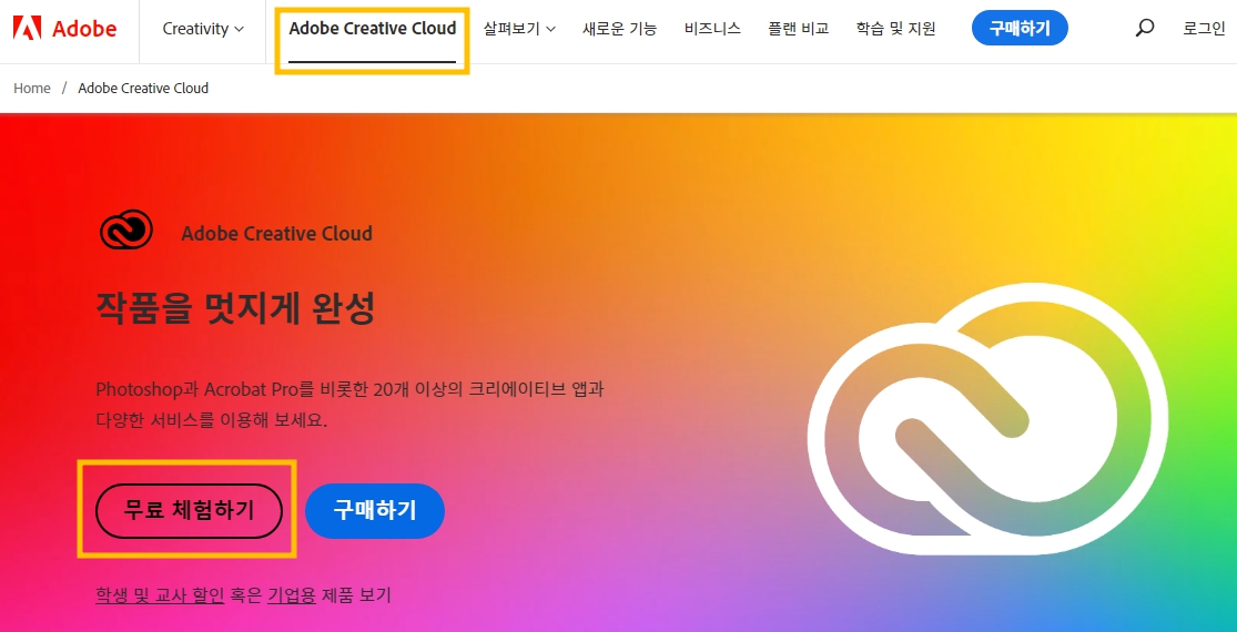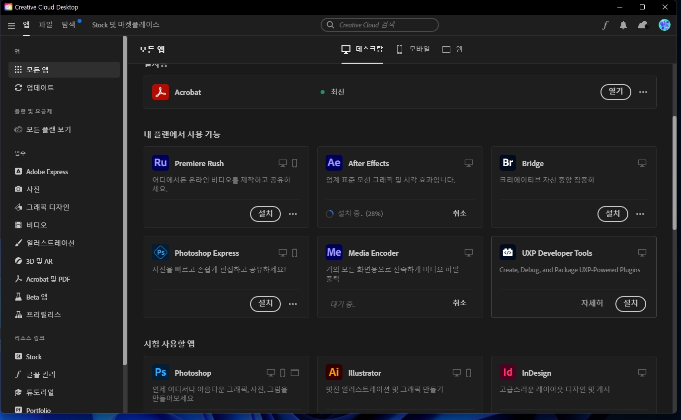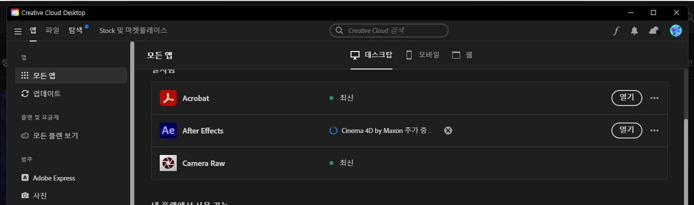 - 크리에이디브 클라우드 섹션으로 이동합니다.