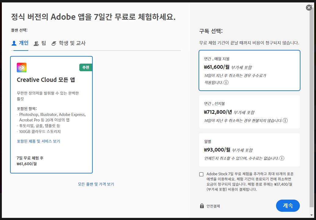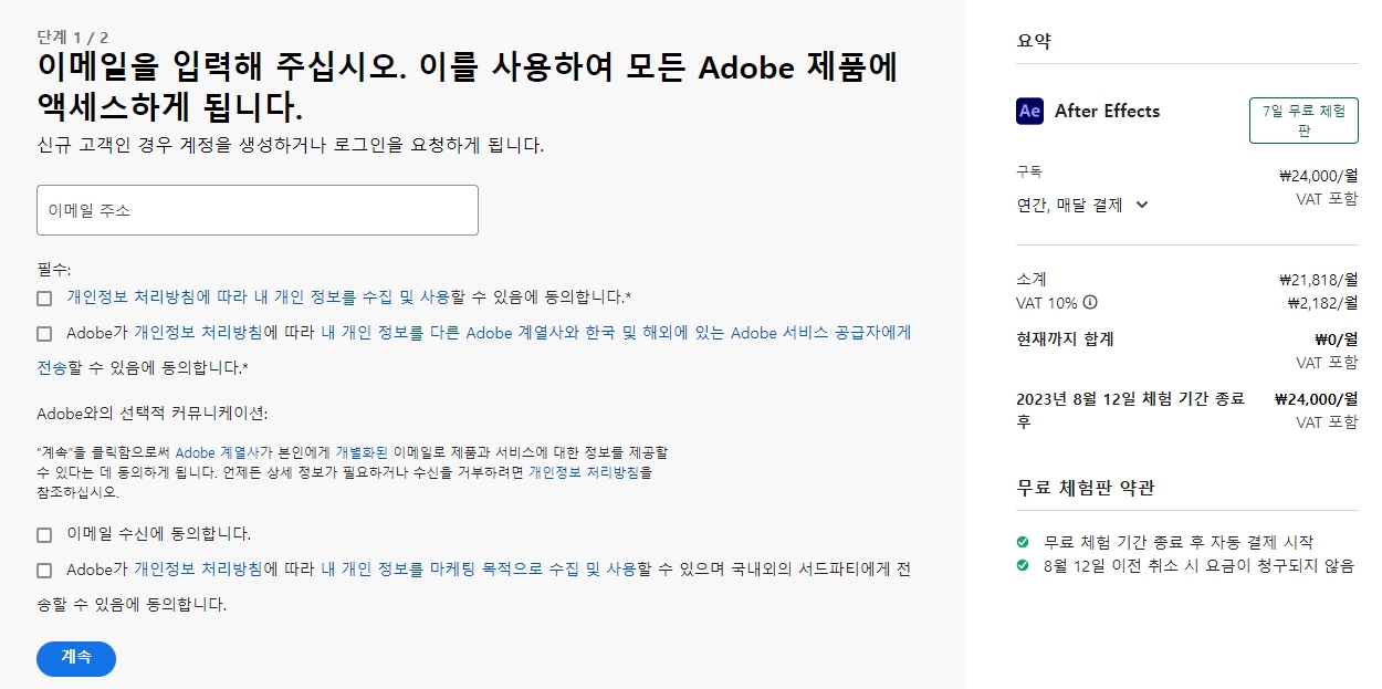 - 어도비 계정을 준비해주세요. 계정이 없으면 공식 홈페이지에서 생성합니다.