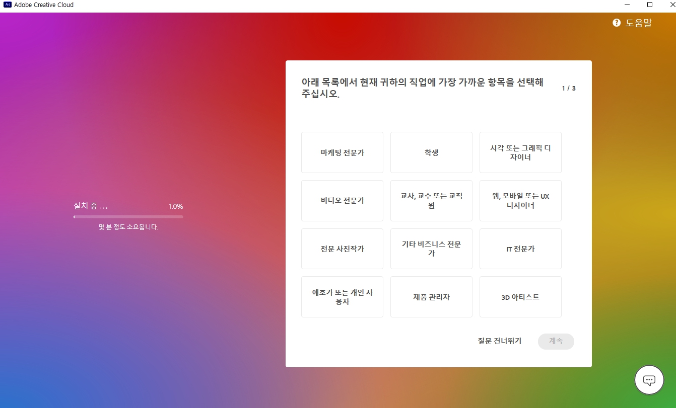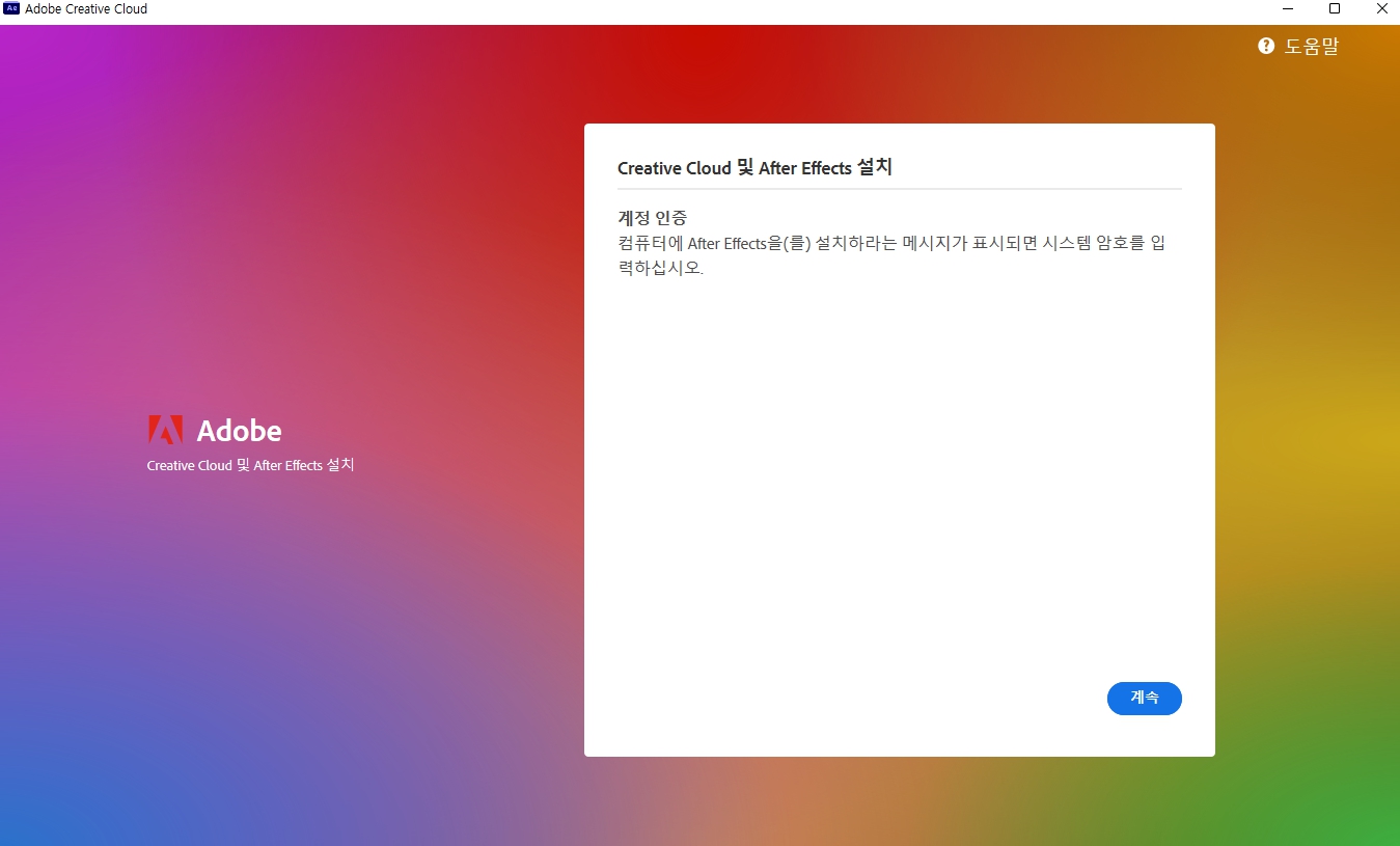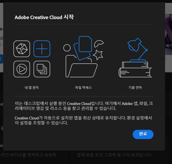 - 설치가 완료되면 프로그램을 실행하고 어도비 계정으로 로그인해주세요.