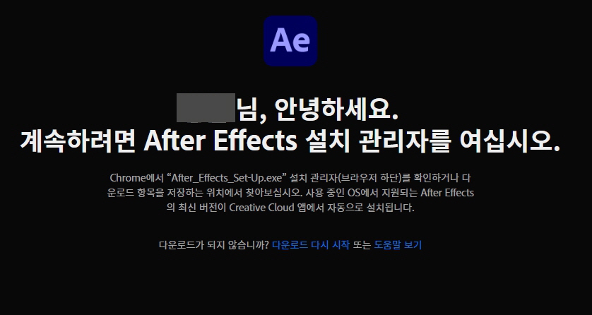 - 다운로드한 에펙 설치 파일 (----.exe) 관리자 모드로 실행해 주세요.