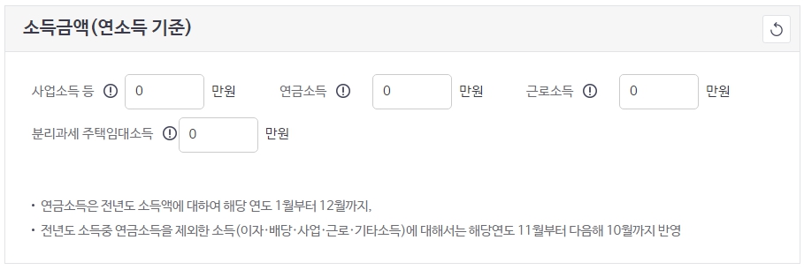연금소득 : 전년도 지급받은 합계액.(보험료 산정시 입력된 합계액에서 50%만 반영)