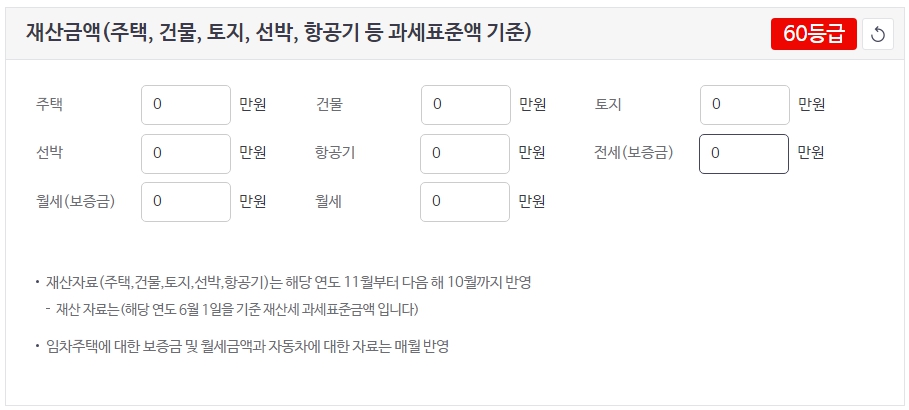 재산금액은 보험료를 산정하는데 중요하게 반영되는 부분입니다. 주택, 건물, 토지, 선박, 항공기 등등 본인이 소유한 모든 자산의 가치를 포함하고 있습니다. 재산의 가치가 높을수록 건강보험료가 높아질 경향이 있습니다. 재산을 관리하는 것은보험료를 절감하고 나의 금융을 유지하는데 중요한 역활을 합니다.