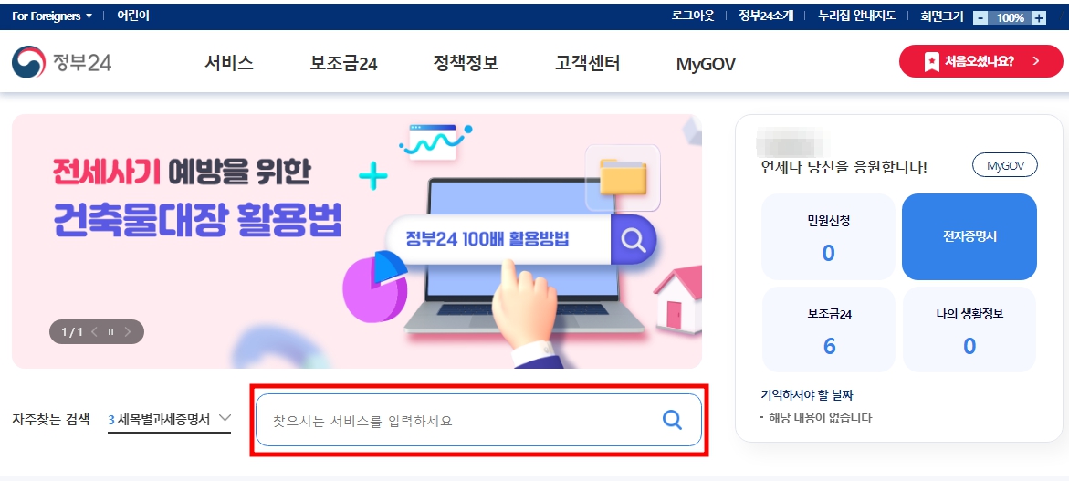 '방문하면 찾으시는 서비스를 입력하세요' 란에 최종학력증명서라고 검색하세요.