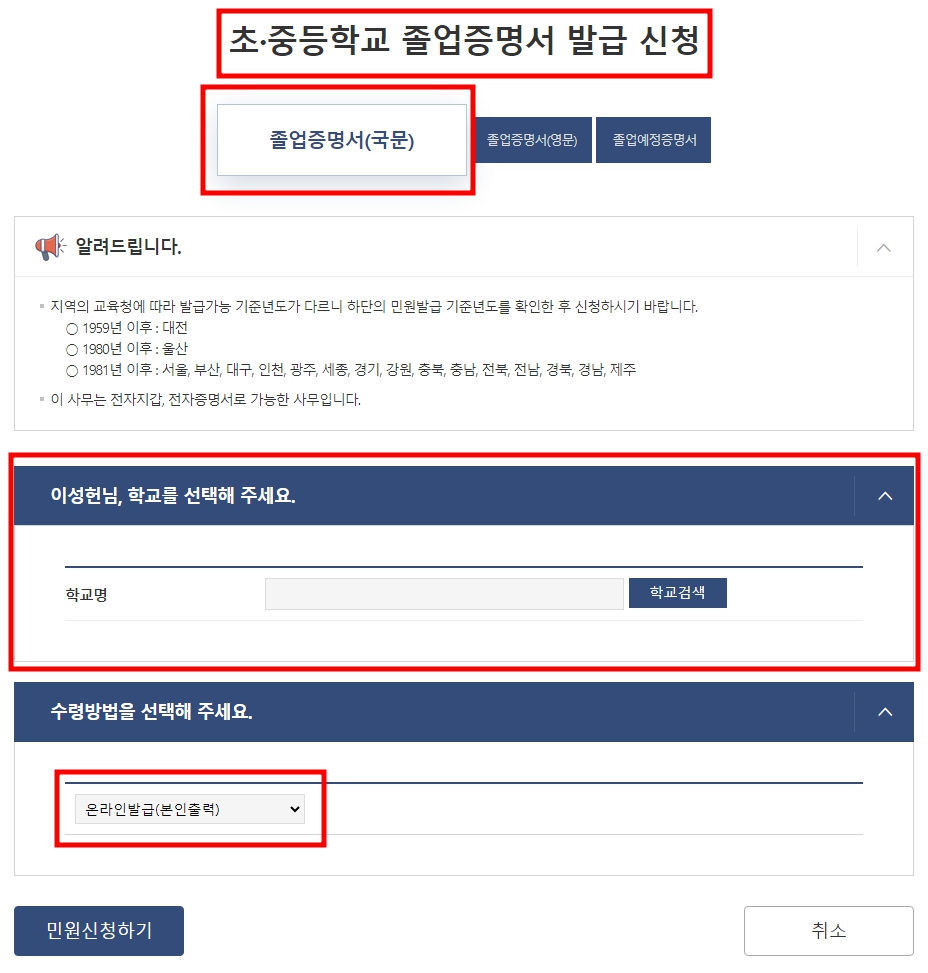 최종학력증명서 발급방법