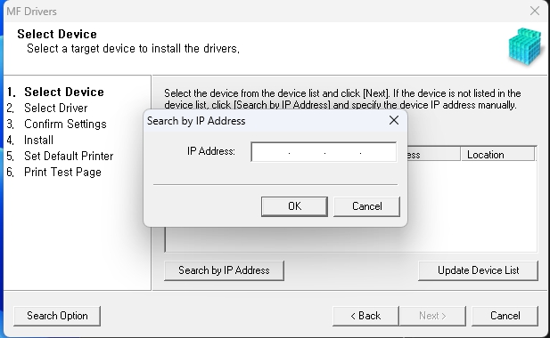나의 프린터 기계에서 확인한 IP주소를 이 곳 아이피 어드레스에 입력해 주세요.