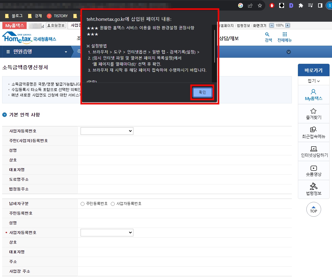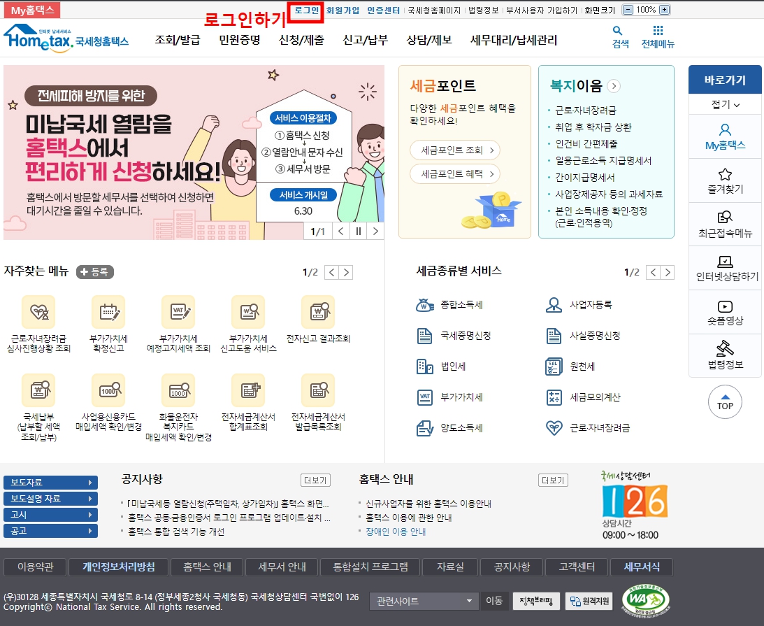 가정 먼저 국세청 홈택스 홈페이지에 방문을 해주셔서 로그인은 해주세요.